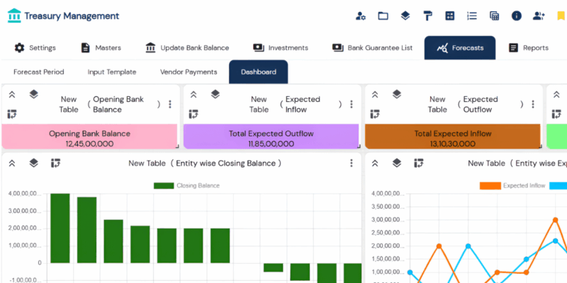 One of the most valuable features of a treasury management system is its customizable reporting and analytics dashboard. The CFOs can access real-time performance metrics, liquidity ratios and compliance KPIs at a glance.